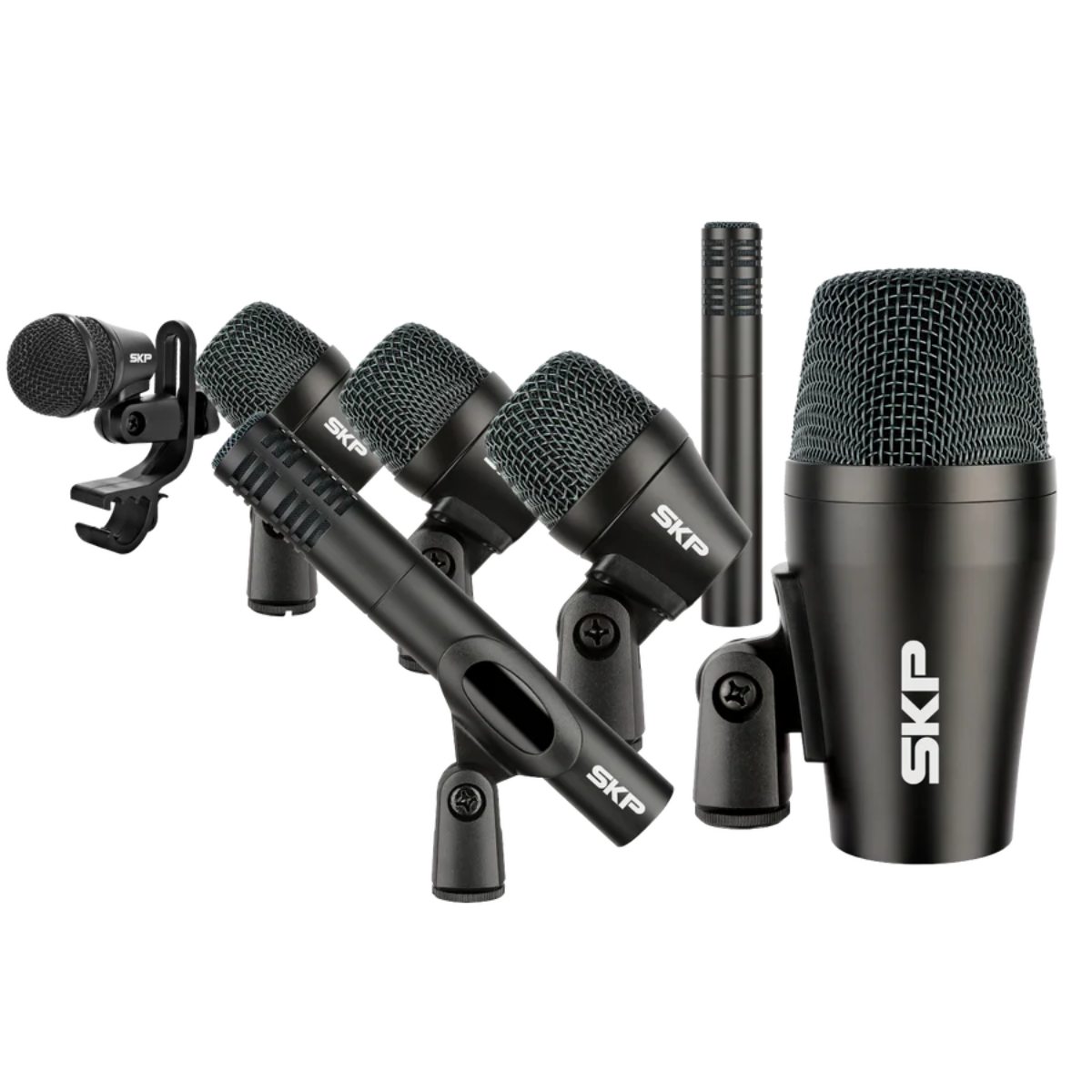 O DRUM 7 é um kit profissional de microfones projetado para capturar com precisão todos os sons de uma bateria de 5 peças. Inclui microfones dinâmicos cardioides para o bumbo, caixa e toms, além de microfones condensadores overhead para capturar os pratos. Seu design compacto e clips integrados permitem uma fácil colocação sem obstruir o movimento do baterista. Conectados por cabos XLR (F), oferecem um sinal de alta qualidade, ideal para gravações e apresentações ao vivo. CARACTERÍSTICAS: 7 microfones para uma cobertura completa da bateria. Microfones dinâmicos cardioides para bumbo, caixa e toms. Microfones condensadores overhead para capturar pratos e sons ambientais. Montagem de rosca padrão e clips integrados para fácil colocação. Conexão XLR (F) para qualidade profissional de áudio. 4 abraçadeiras removíveis para montar nos aros da bateria. Especificações: Microfone Bumbo (Dinâmico Cardioide): Sensibilidade: 69 dB ± 1,5 dB Posições A e B para capturar o impacto do parche e harmônicos. Microfone Caixa (Dinâmico Cardioide): Sensibilidade: -55 dB ± 1,5 dB Posições A e B para capturar impacto e riqueza harmônica. Microfone Tom (Dinâmico Cardioide): Sensibilidade: -42 dB ± 1,5 dB Posições A e B para capturar graves e harmônicos. Microfone Condensador Overhead: Sensibilidade: -41 dB ± 3 dB Alimentação Phantom: 48V DC Posições A, B e C para capturar pratos e ambientes. Inclui filtro antipop.